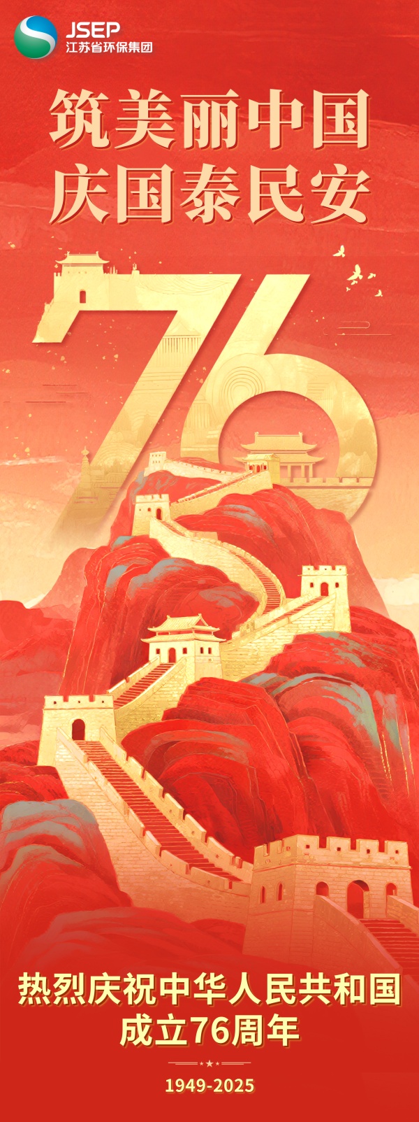 金秋送爽紅旗展,華夏同慶盛世歡。七十六載春秋里,祖國山河遠闊依舊,人間璀璨如新。泰州公司將緊跟時代步伐,與祖國同呼吸、共命運,與時代共赴環保新篇章。愿新時代環保人繼續砥礪初心,以技術創新破解環保難題,以實干作為服務地方民生,讓天更藍、地更綠、水更清,以點滴之力匯聚綠色浪潮,為祖國的繁榮昌盛注入持久的綠色動能。祝福偉大祖國青山常在、綠水長流!
